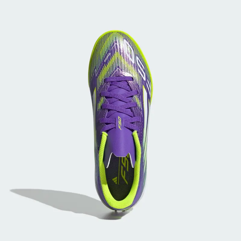 Find your fast to truly express yourself on the field. Feel the rush in adidas F50 cleats engineered for speed. Standing out with an eye-catching Sprintgrid print, the Fiberskin upper on these juniors’ League soccer cleats employs a perforated tongue for cool play. A lug rubber outsole offers pace on artificial turf surfaces.