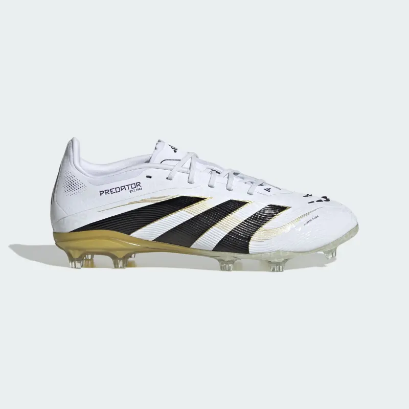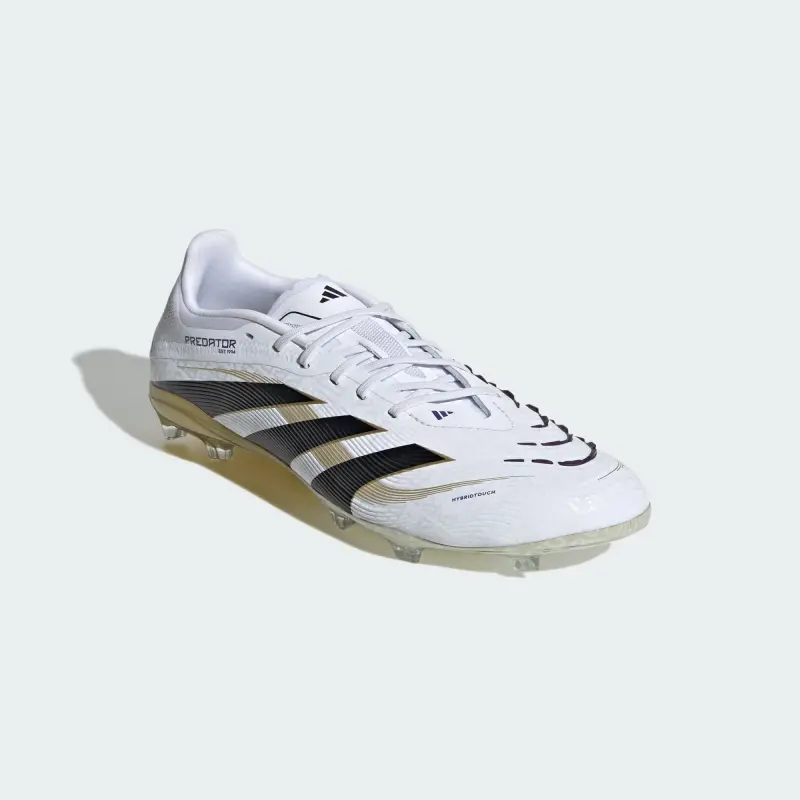 Discover the difference between aiming to score and knowing you will with adidas Predator cleats that are crafted for goals. These juniors’ Elite cleats have a HybridTouch upper with strategically placed rubber Strikeskin fins that provide perfect contact with the soccer. The Controlframe 2.0 firm ground outsole and adidas PRIMEKNIT collar are designed to give you a stable stance when the goal’s at your mercy.