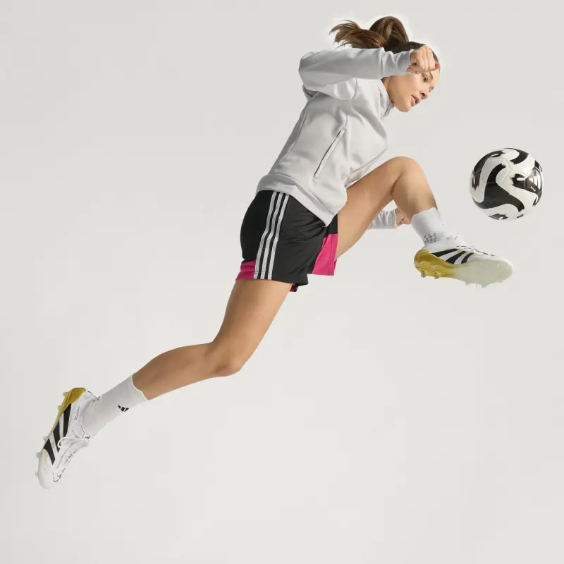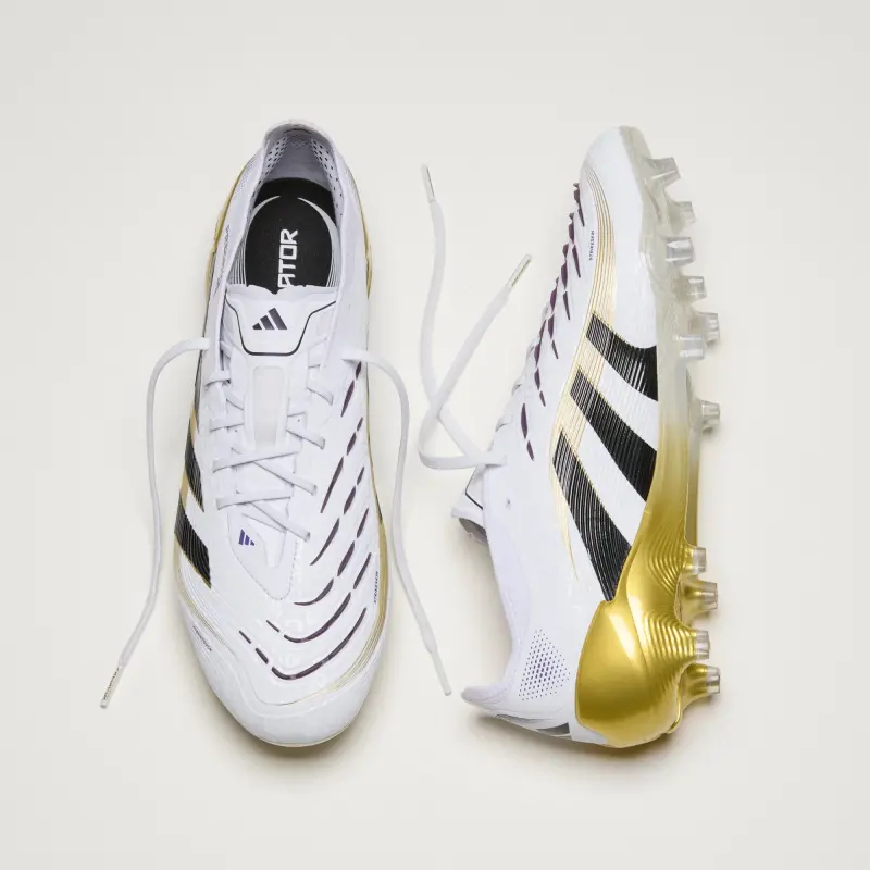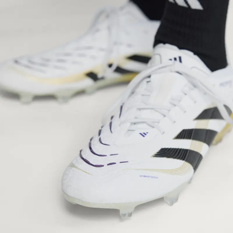 Discover the difference between aiming to score and knowing you will with adidas Predator cleats that are crafted for goals. These Elite cleats have a HybridTouch upper with strategically placed rubber Strikeskin fins that provide perfect contact with the soccer. The Controlframe 2.0 firm ground outsole and adidas PRIMEKNIT collar are designed to give you a stable stance when the goal’s at your mercy.