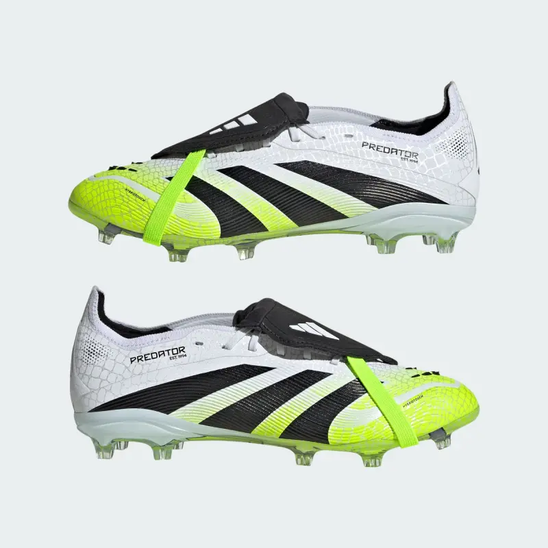 Discover the difference between aiming to score and knowing you will with adidas Predator cleats that are crafted for goals. These juniors’ Elite cleats have a HybridTouch upper with a fold-over tongue and rubber Strikeskin fins that help provide perfect contact with the soccer. The Controlframe 2.0 firm ground outsole and adidas PRIMEKNIT collar are designed to give you a stable stance when the goal’s at your mercy.