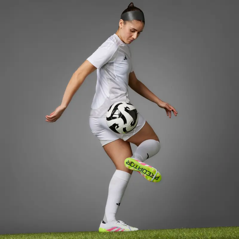 Go into every game knowing you’ll score in adidas Predator Elite cleats crafted for goals. With strategically placed rubber Strikeskin fins and a fold-over tongue, the flexible HybridTouch upper is designed to help you make perfect contact with the soccer. That Controlframe 2.0 firm ground outsole and adidas PRIMEKNIT collar are all about keeping you stable as you zero in on your target.