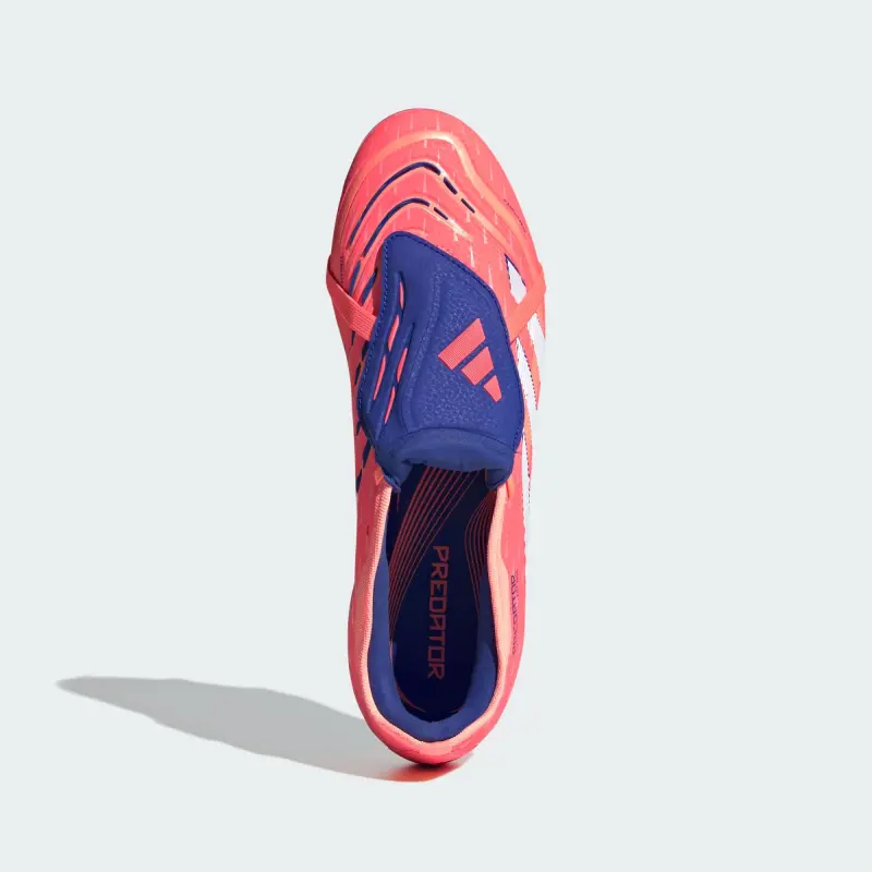 >Discover the difference between aiming to score and knowing you will with adidas Predator cleats that are crafted for goals. These Pro soccer cleats have a flexible HybridTouch upper with a fold-over tongue and grippy rubber Strikeskin fins that help control every strike of the ball. Turn them over and you’ll find a full-length Controlplate outsole designed to keep you stable on dry grass.
