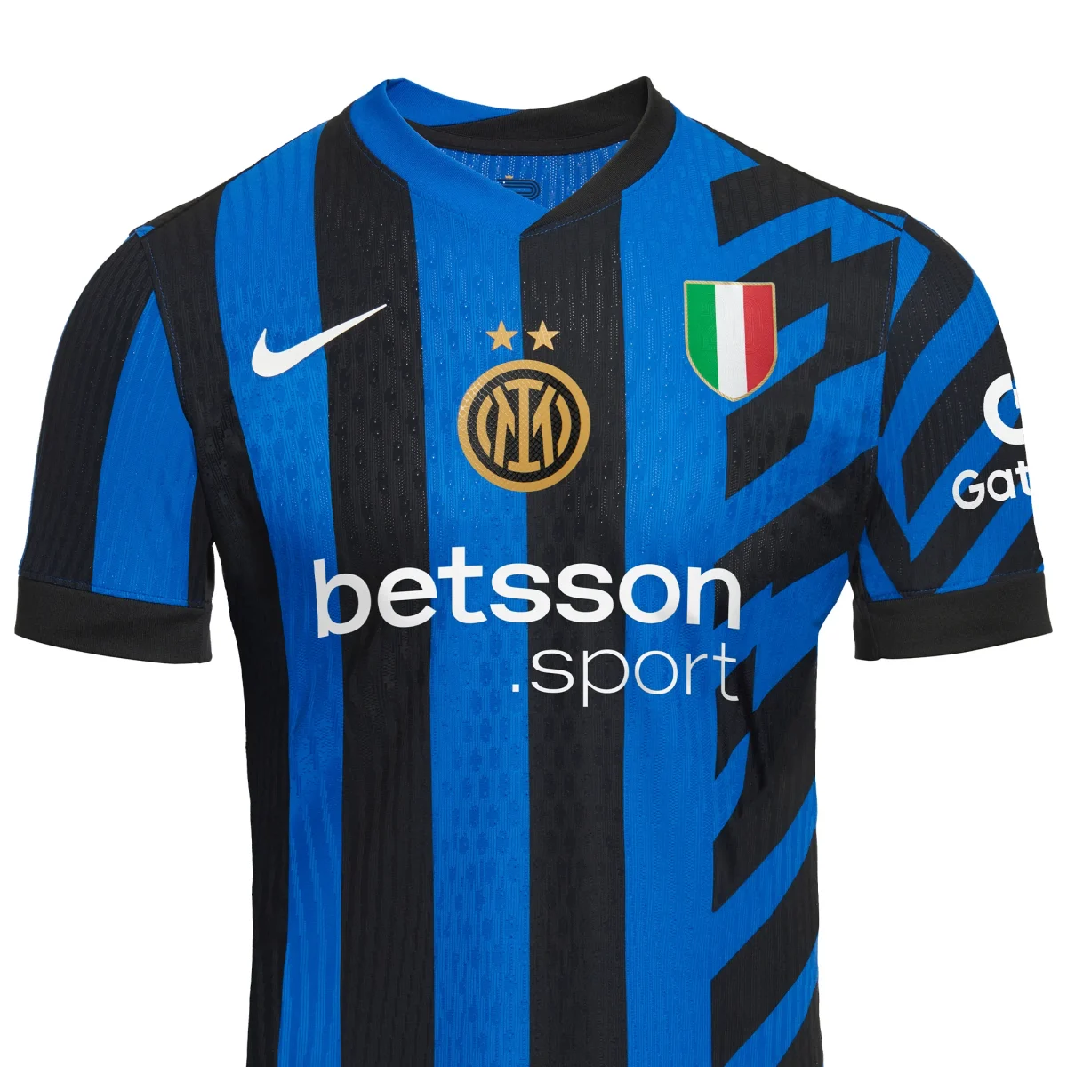 For the first time on our jersey, the second star shines above the logo of the new 2024/25 Home Kit. The Match collection combines authentic design details with lightweight, quick-drying technology that keeps your skin cool and delivers comfort on the pitch. Nike Dri-FIT ADV technology unites breathable fabric with advanced technical features so that your skin remains dry and in maximum comfort. Developed using data from athlete testing, the open-weave fabric at the hottest points keeps you cool when the game gets into full swing. The jersey is made using recycled polyester and the authentic design is the same one worn by the stars on the pitch. You can customise the jersey with the name and number of your favourite player and add the Lega Serie A 2024/25 or Champions League patches on the sleeve.