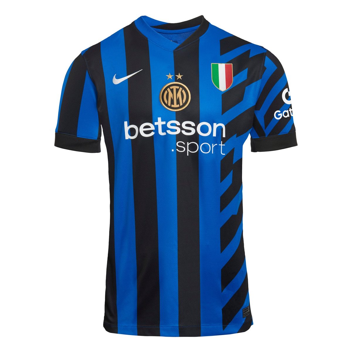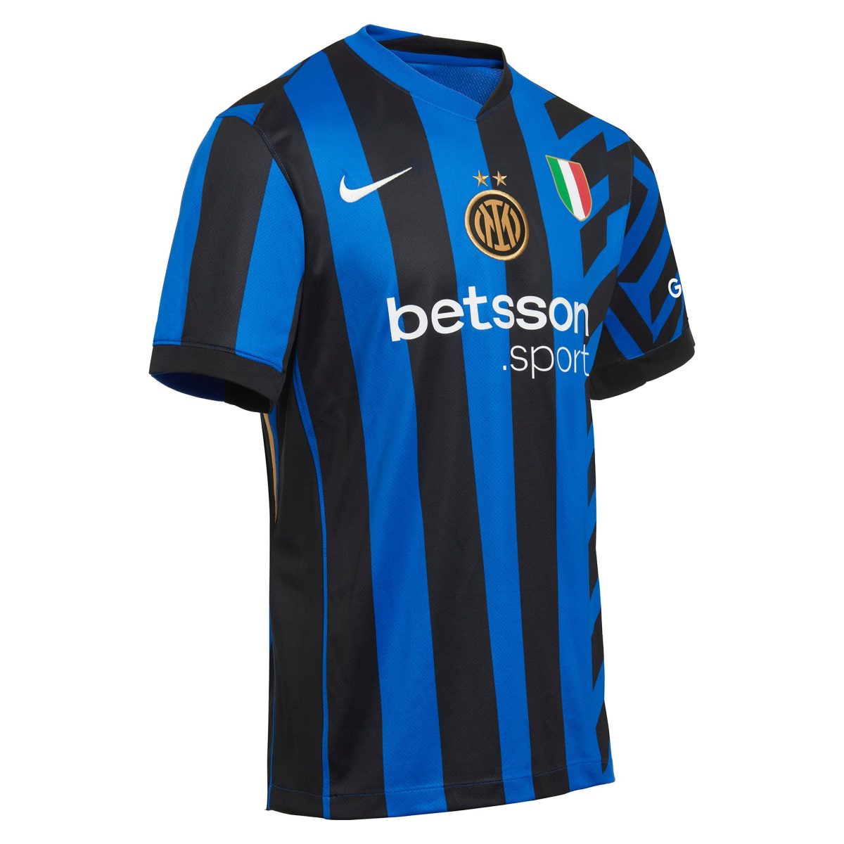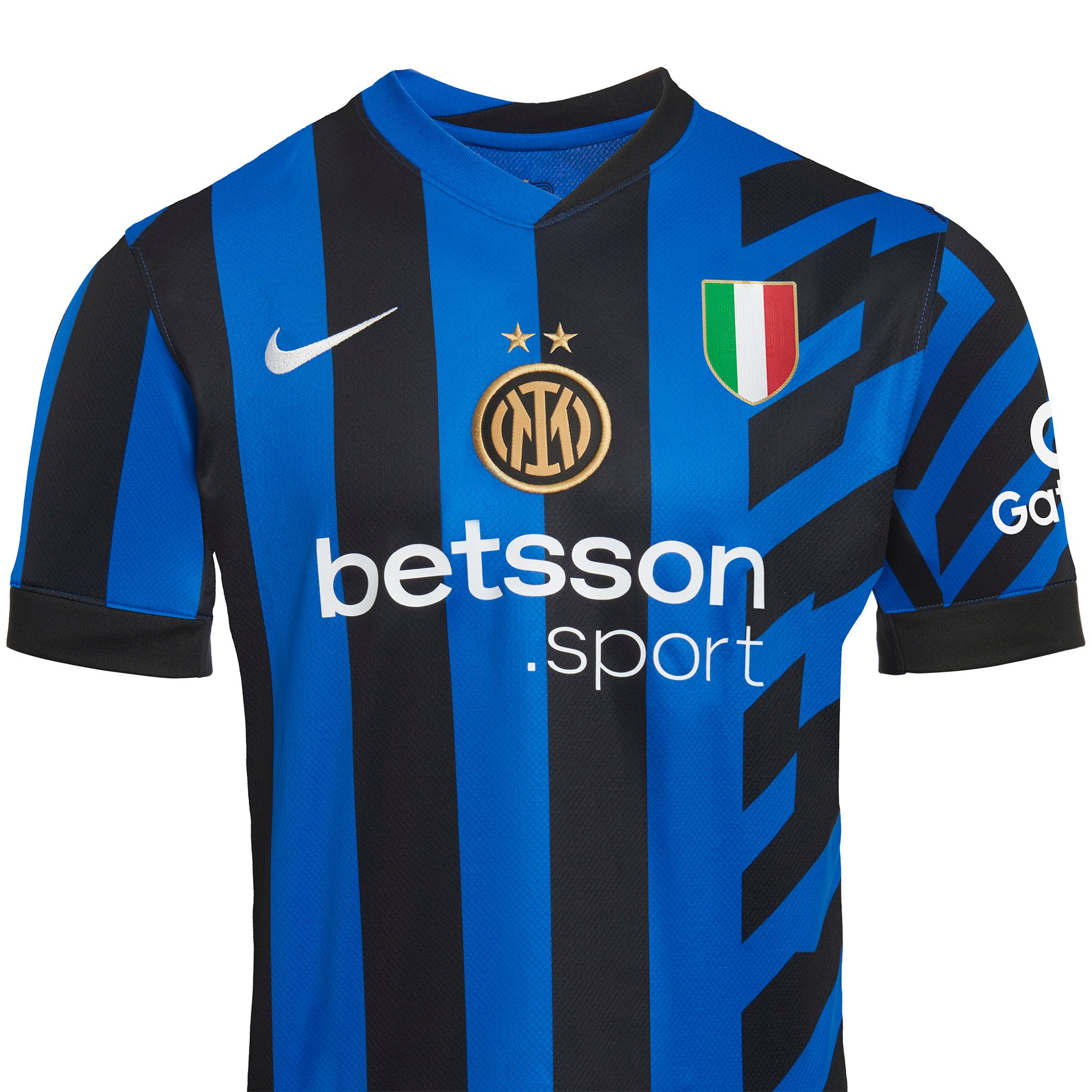 For the first time on our jersey, the second star shines above the logo of the new 2024/25 Home Kit. The Stadium collection replicates the details of the original design with breathable technology for a match look that is inspired by the appearance of the professionals on the pitch. Nike Dri-FIT technology wicks away sweat to encourage rapid evaporation and keep your skin dry for excellent comfort. The jersey is made using recycled polyester. The new Home Kit is completed with matching shorts and socks. You can customise the jersey with the name and number of your favourite player and add the Lega Serie A 2024/25 or Champions League patches on the sleeve.