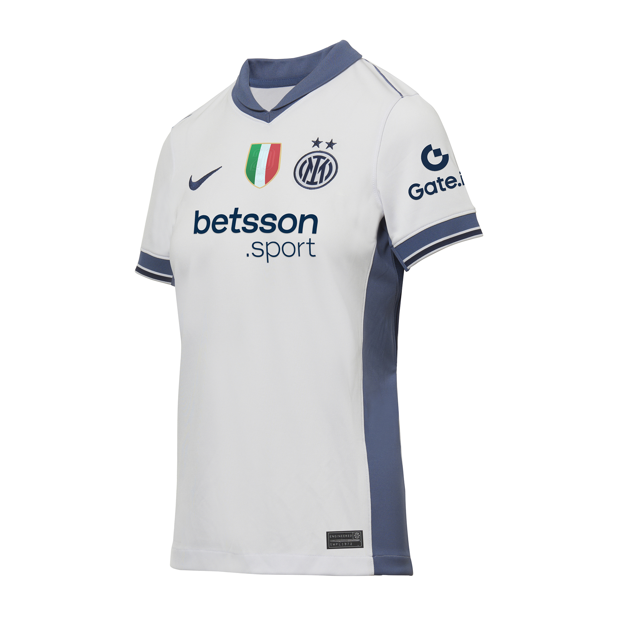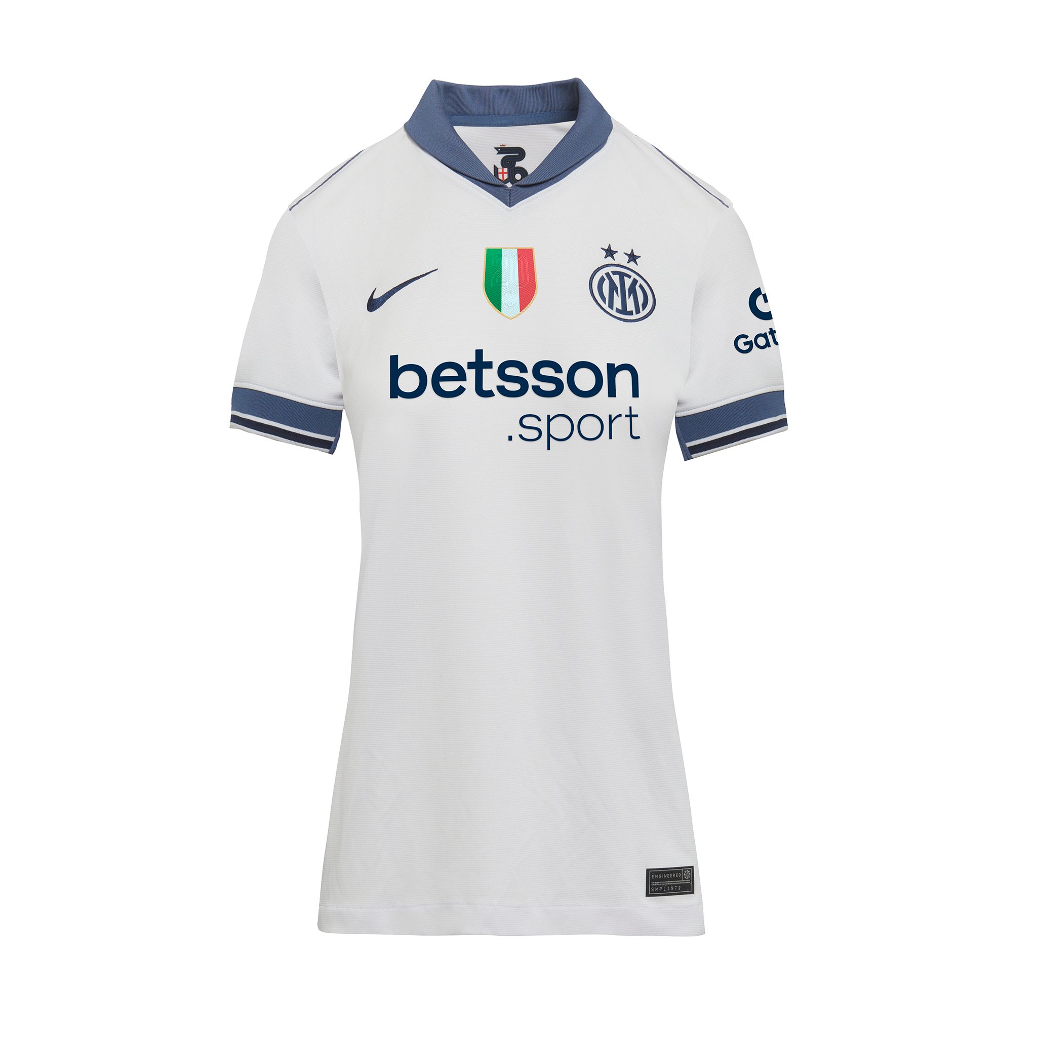 For the first time on our jersey, the second star shines above the logo of the new 2024/25 Away Kit. The Stadium collection replicates the details of the original design with breathable technology for a match look that is inspired by the appearance of the professionals on the pitch. Nike Dri-FIT technology wicks away sweat to encourage rapid evaporation and keep your skin dry for excellent comfort. The jersey is made using recycled polyester. The new Away Kit is completed with matching shorts and socks. You can customise the jersey with the name and number of your favourite player and add the Lega Serie A 2024/25 or Champions League patches on the sleeve.