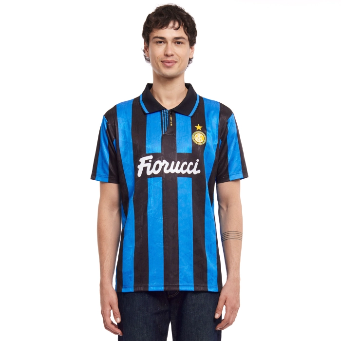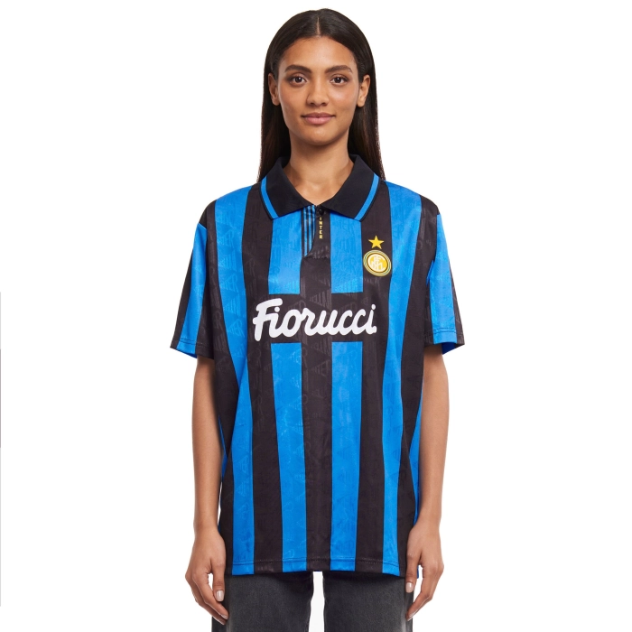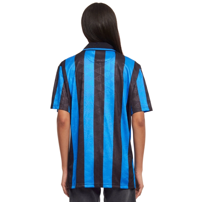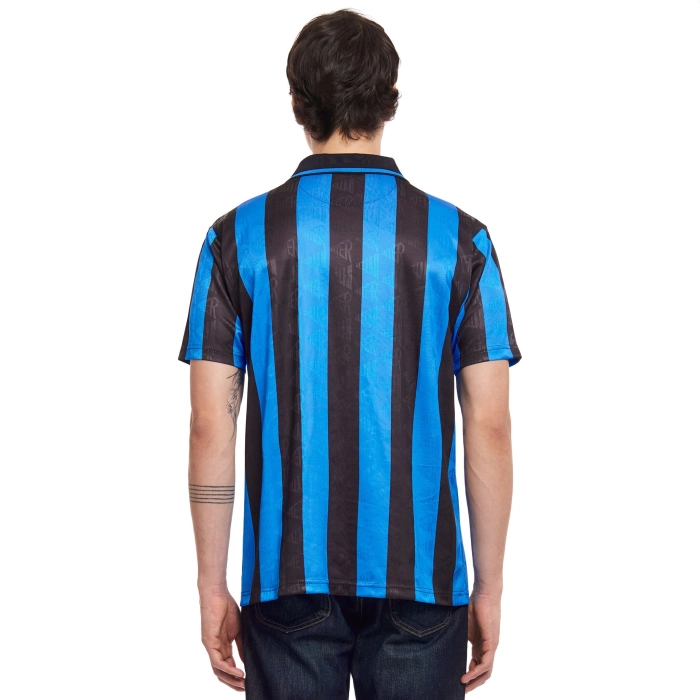 The 1993/94 retro Home jersey is made of 100% recycled polyester in a special jacquard fabric. The shirt has short sleeves, a polo collar and button fastening. The INTER crest is flock-printed, while the sponsor and stripes are sublimated.