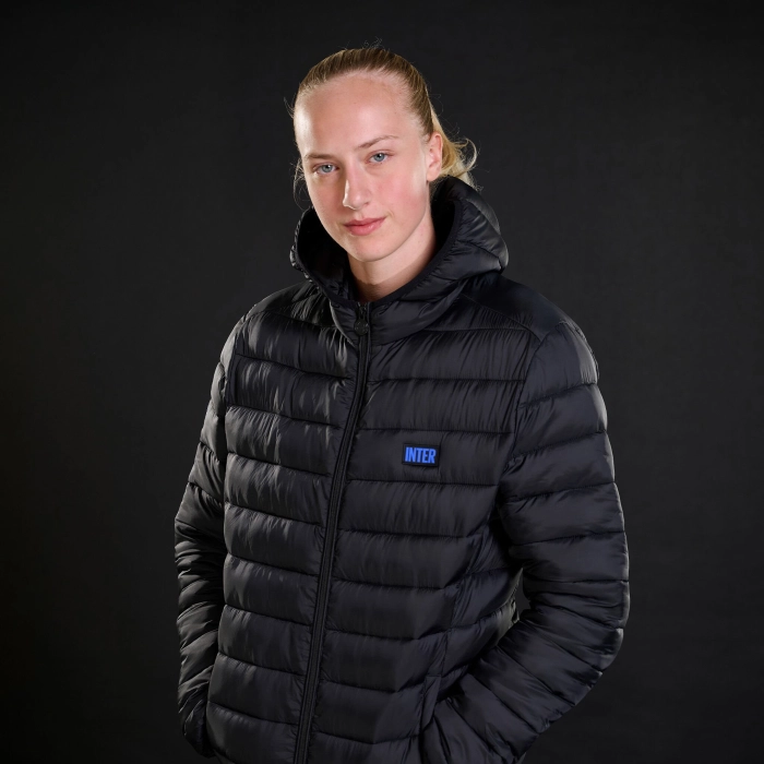 The INTER puffer jacket is perfect for the arrival of the colder months. Ideal for those autumn games at the stadium, it is perfect to show off your love for the Nerazzurri. Slim fit.