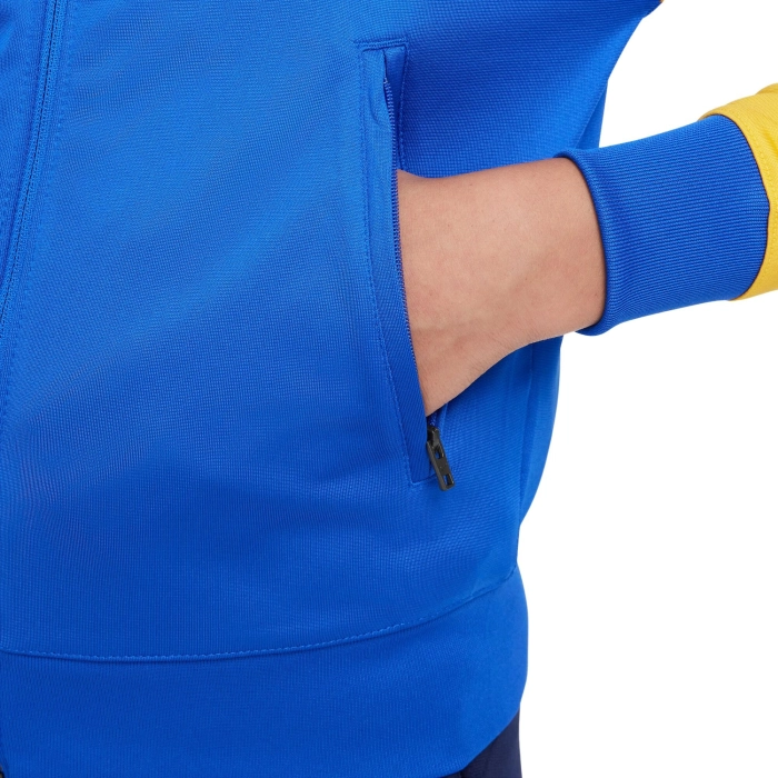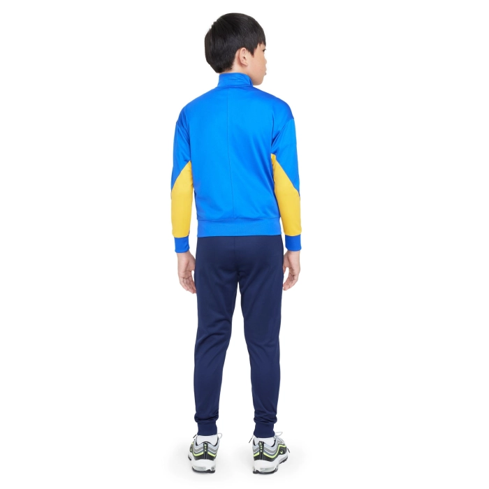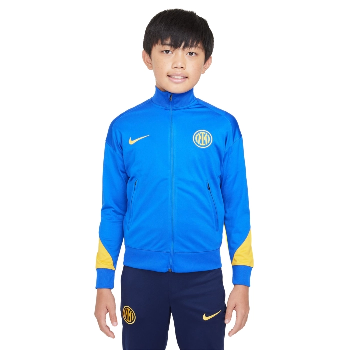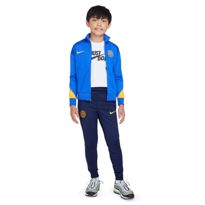The INTER training tracksuit boasts design features specially tailored to football’s rising stars. The casual, relaxed fit pairs well with breathable fabric that keeps you cool so you can hone your skills with maximum concentration. Nike Dri-FIT technology wicks sweat away from your skin for quicker evaporation, helping you to stay dry and comfortable. Zip pockets mean you can keep your essentials safe. Lower leg zips allow you to change quickly without taking off your shoes. Elasticated neck and cuffs.