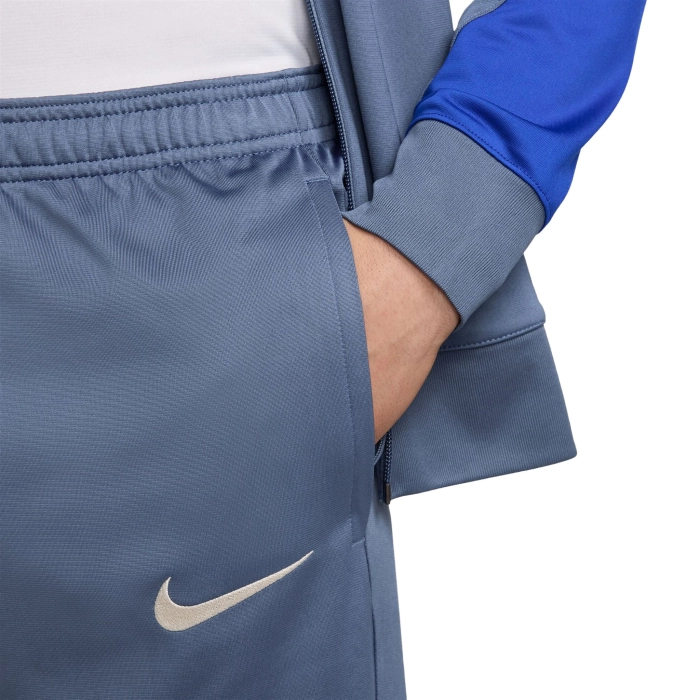 The INTER training tracksuit boasts design features specially tailored to football’s rising stars. The casual, relaxed fit pairs well with breathable fabric that keeps you cool so you can hone your skills with maximum concentration. Nike Dri-FIT technology wicks sweat away from your skin for quicker evaporation, helping you to stay dry and comfortable. Zip pockets mean you can keep your essentials safe. Lower leg zips allow you to change quickly without taking off your shoes. Elasticated neck and cuffs.