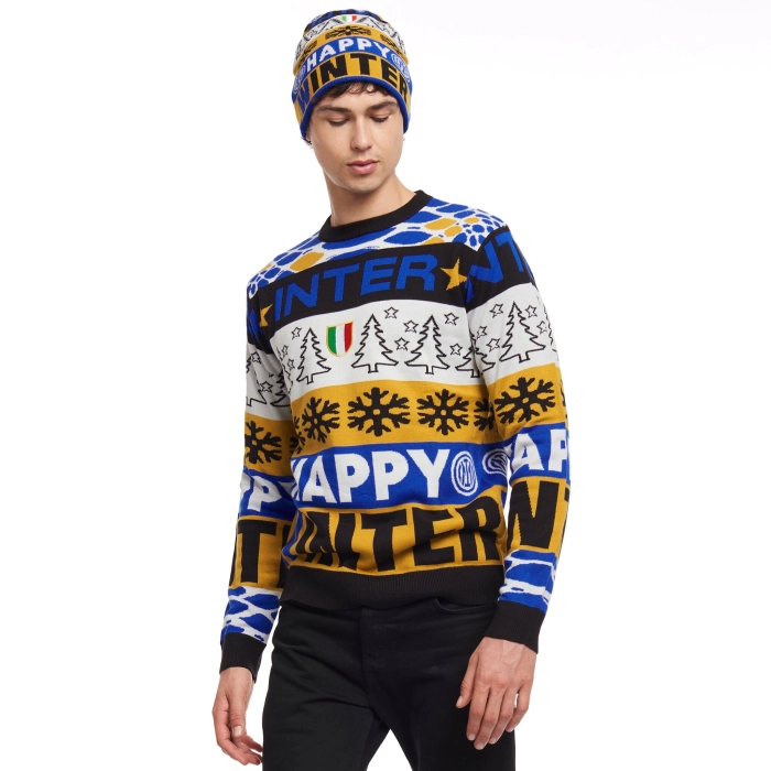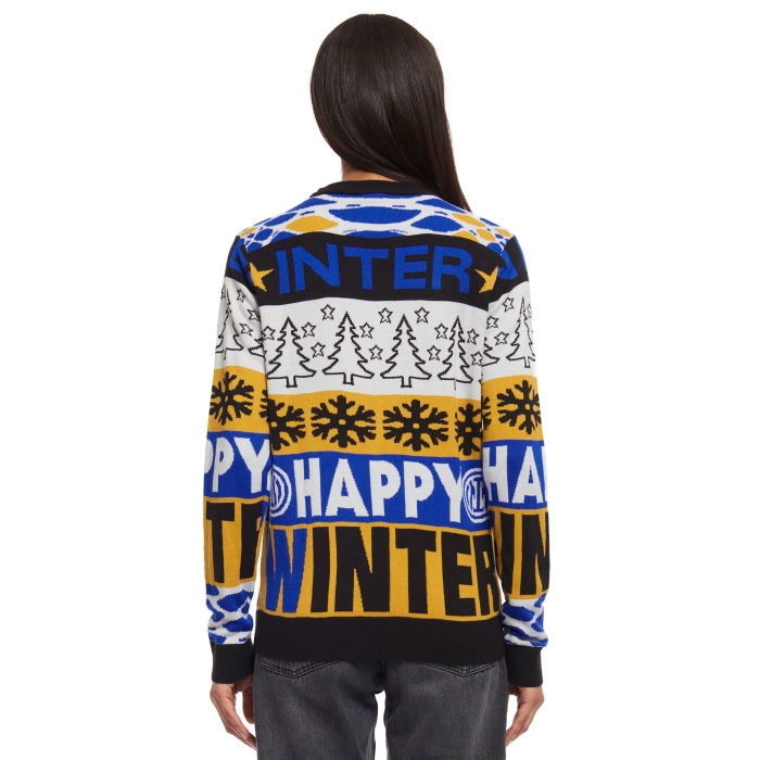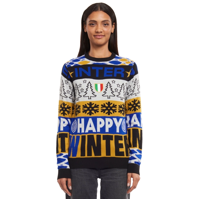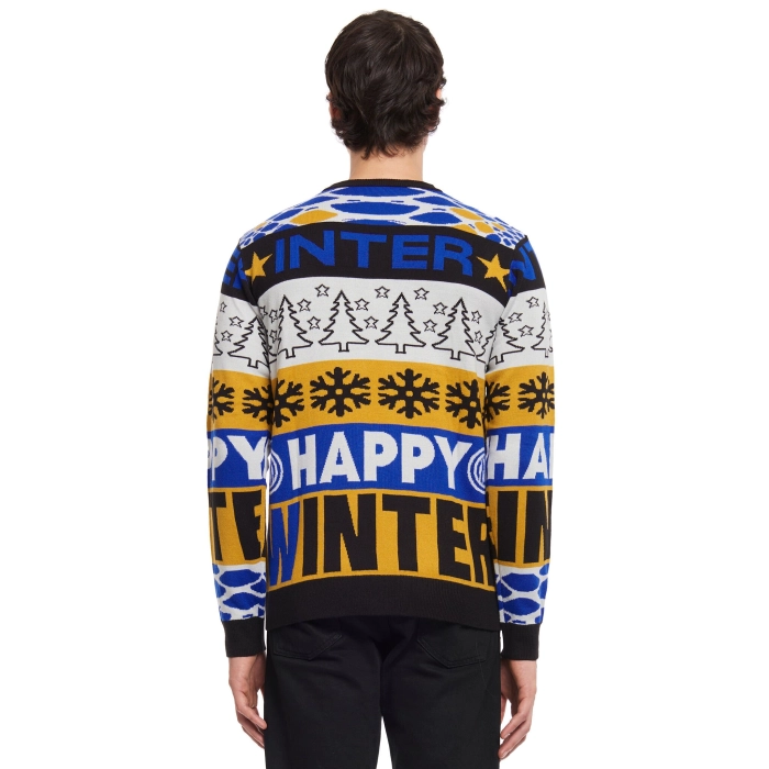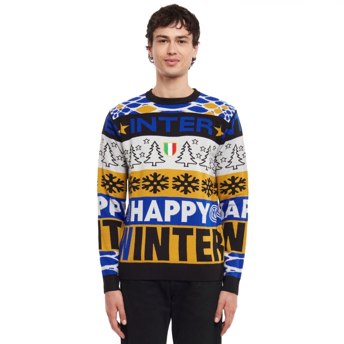 The INTER Christmas sweater is the essential piece to wear during the holidays. With a soft-touch crew neck, It features a festive pattern in black, blue, and yellow. Ribbed cuffs and hem add to the comfort, and it’s personalized with the club’s crest at the center. Regular fit.