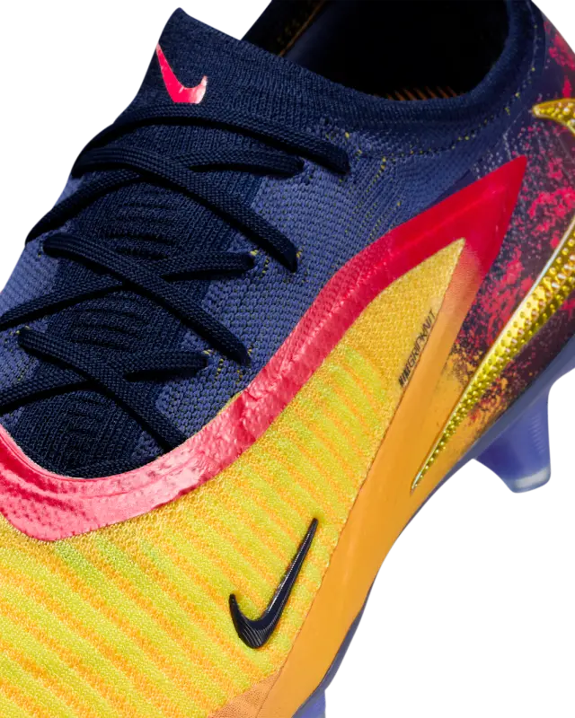 With its icy blue and fiery red and yellow, this Phantom 6 Elite speaks to Erling Haaland’s inner fire—and his goal-scoring eruptions that ensue. It powers his precision with revolutionary Gripknit, a sticky texture that brings his foot closer to the ball and helps put him in control of every opportunity—because missing isn’t an option. It gives him an unfair scoring advantage by combining with the Cyclone 360 traction plate for all those quick cuts.