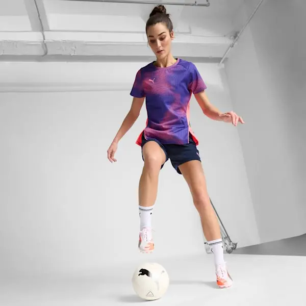 How fast is the ULTRA 5 ULTIMATE? Fasten your seatbelt and unleash your speed with PUMA’s ultimate soccer cleats, designed just for her. Featuring SPEEDSYSTEM outsole, FastTrax studs, and GripControl Pro skin for unmatched traction and control. Ortholite® heel cushioning ensures every step is secure and powerful. Play faster, feel unstoppable.
